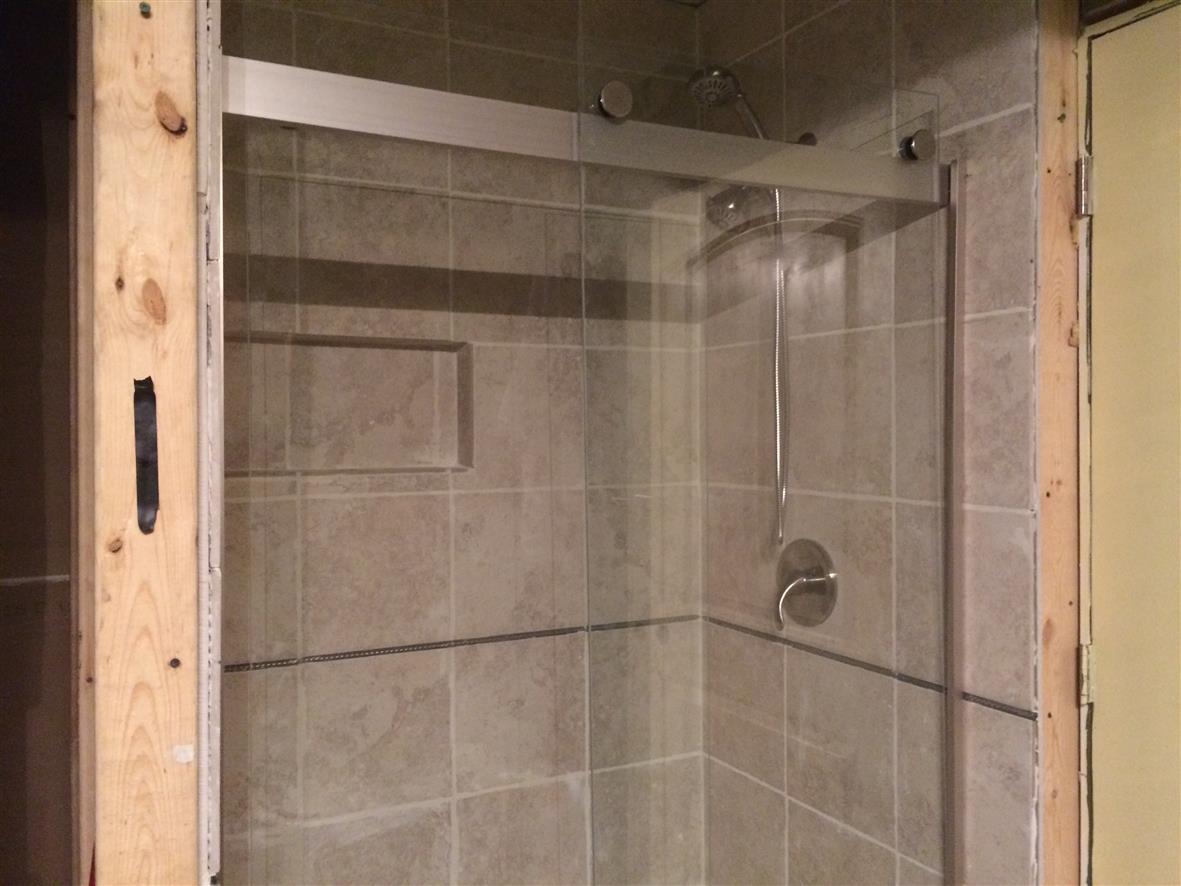 Mostly my husband worked on the new shower. Oh, I hung a few tiles and did maybe half of the grouting. Maybe. And I helped hang the shower doors.