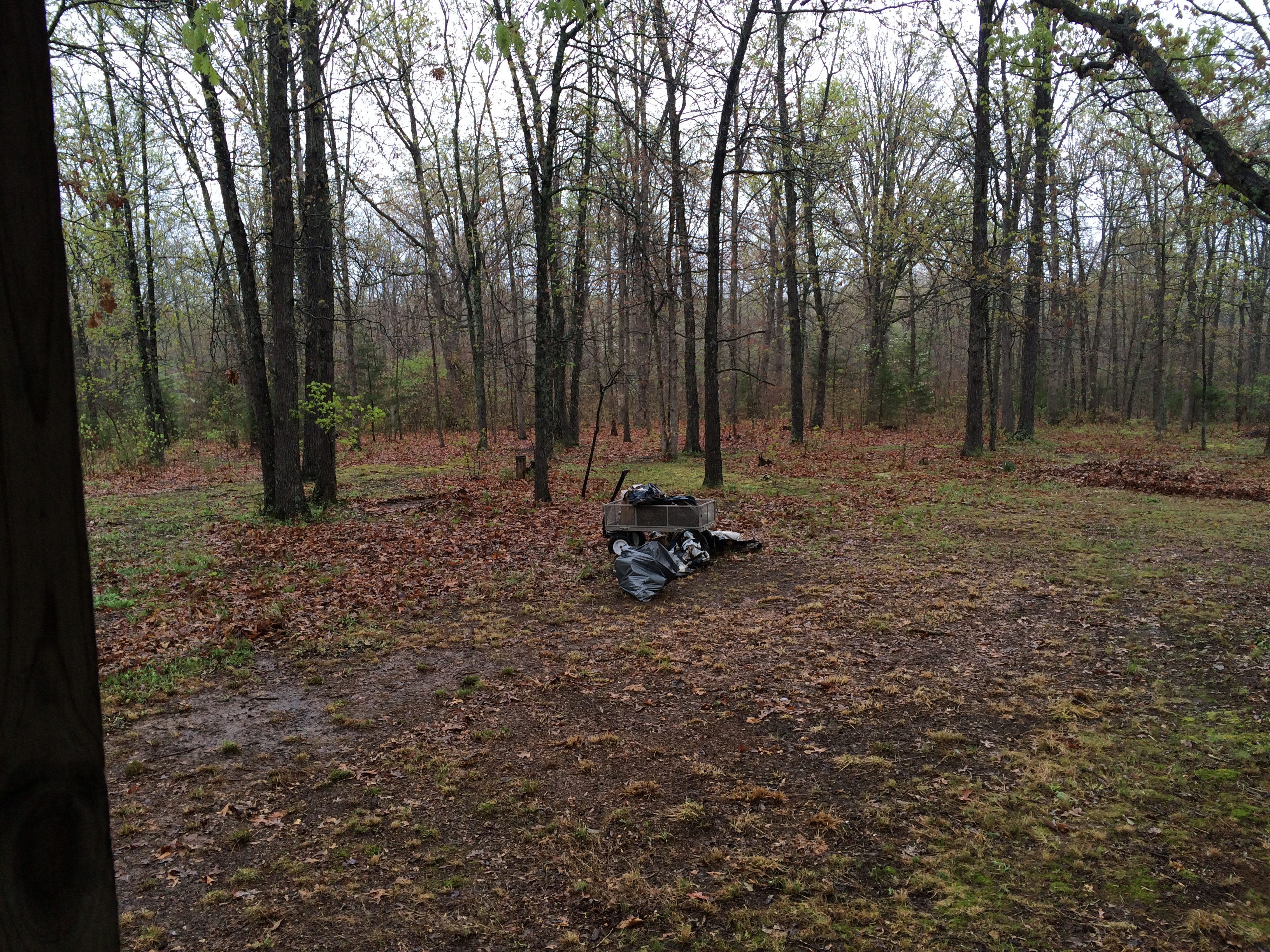 On Saturday morning, we located the campsite and marked it—thankfully—and literally pushed over a few dead trees. Timberrrrrrr!