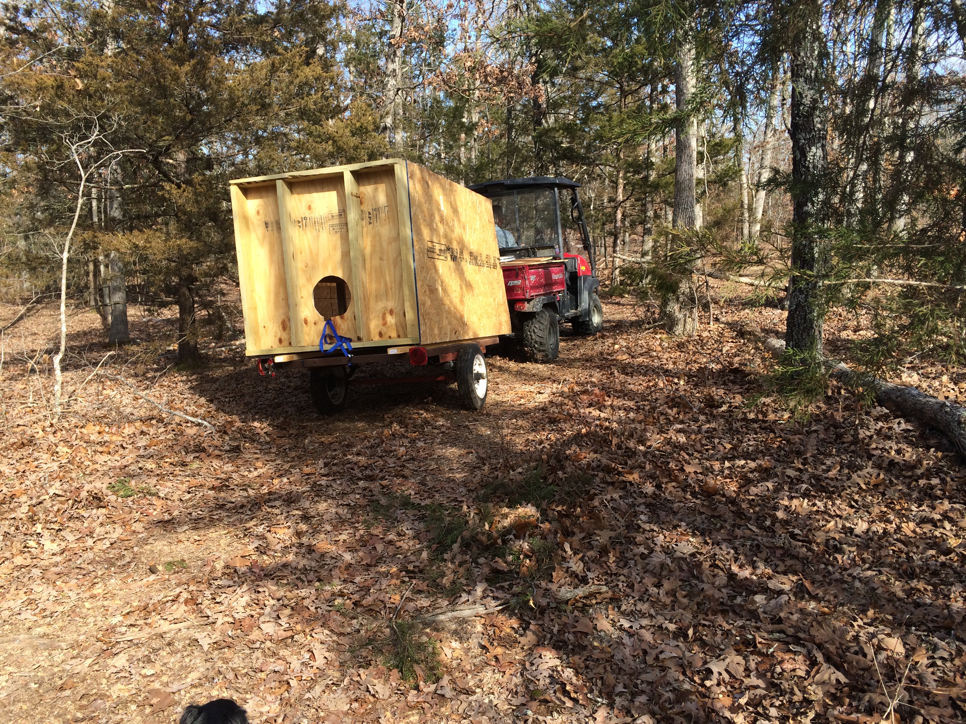First, though, he finished building the outhouse for the campsite. The original plan was to tack it together and move it in pieces, but we ended up moving the whole thing on the trailer. Damn, was that heavy or what? We had to lever it up on blocks, then he just pushed it over.